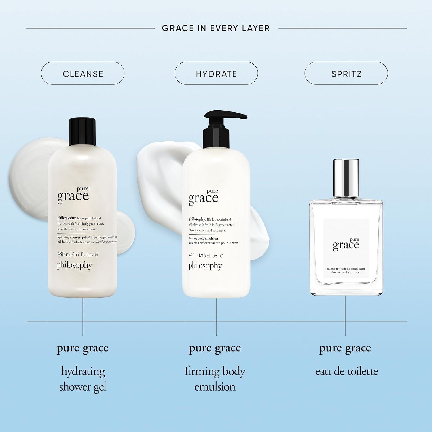philosophy pure grace hydrating bath & shower gel – efficiently cleanses, soothes & comforts dry skin – vegan & cruelty free formula