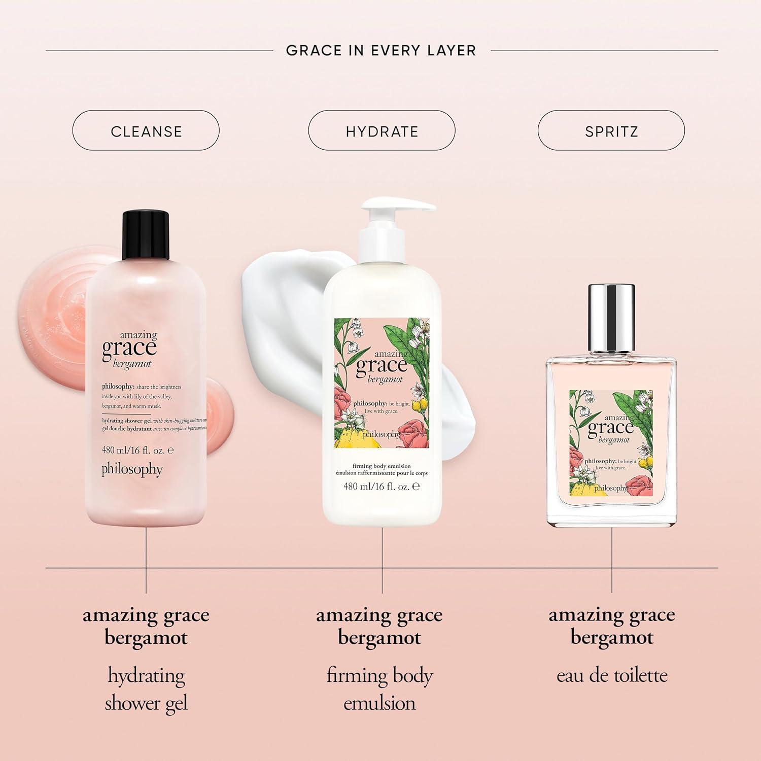 philosophy amazing grace firming body emulsion – luxury scented body lotion – formulated with shea butter for fast absorbing hydration – skin feels soft and smooth – suitable for all skin types(amazing grace bergamot)
