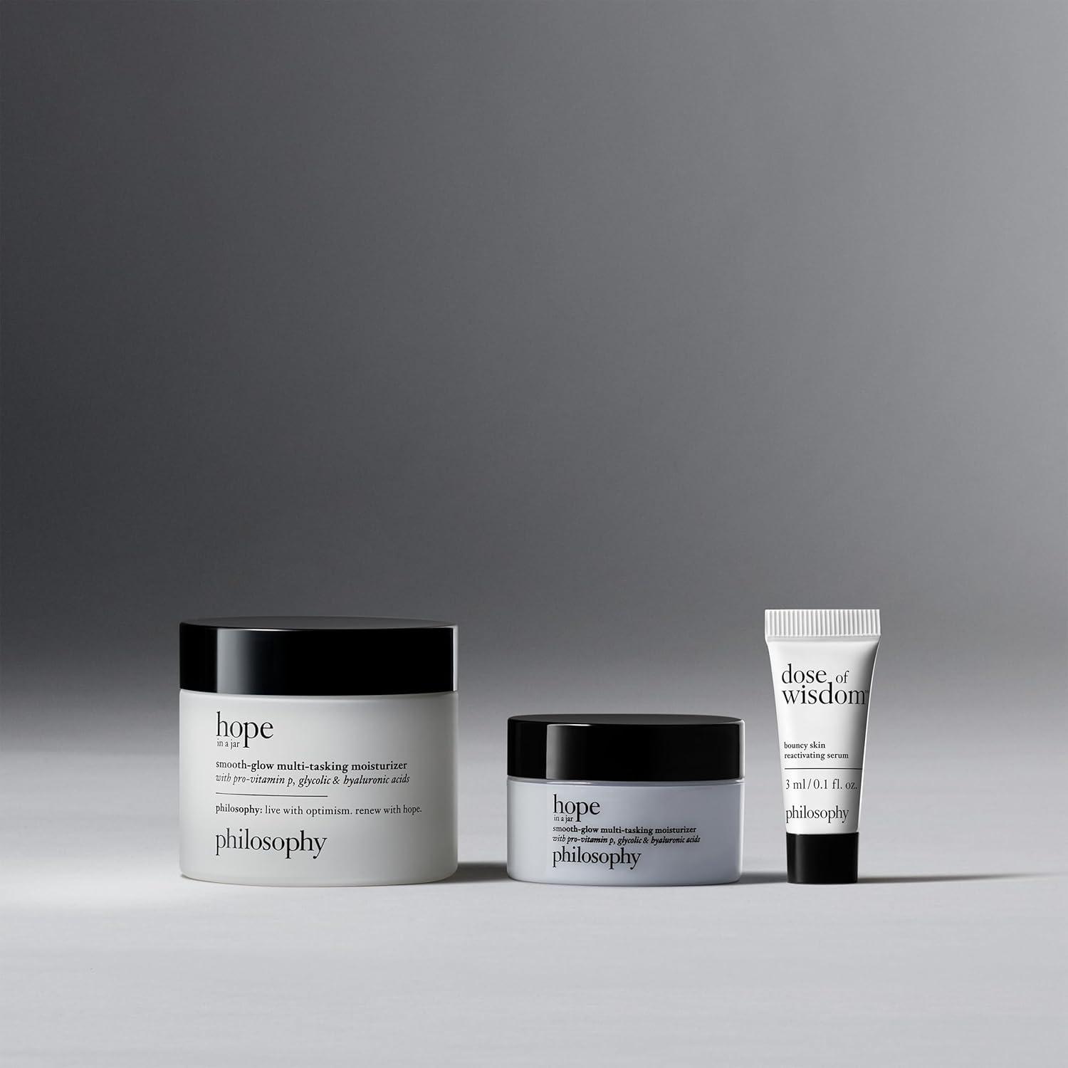 philosophy hope in a jar smooth-glow multi-tasking face moisturizer – with pro-vitamin P, glycolic & hyaluronic acid – provides deep & long-lasting hydration & smoother, radiant skin(0.5 Fl Oz (Pack of 1))
