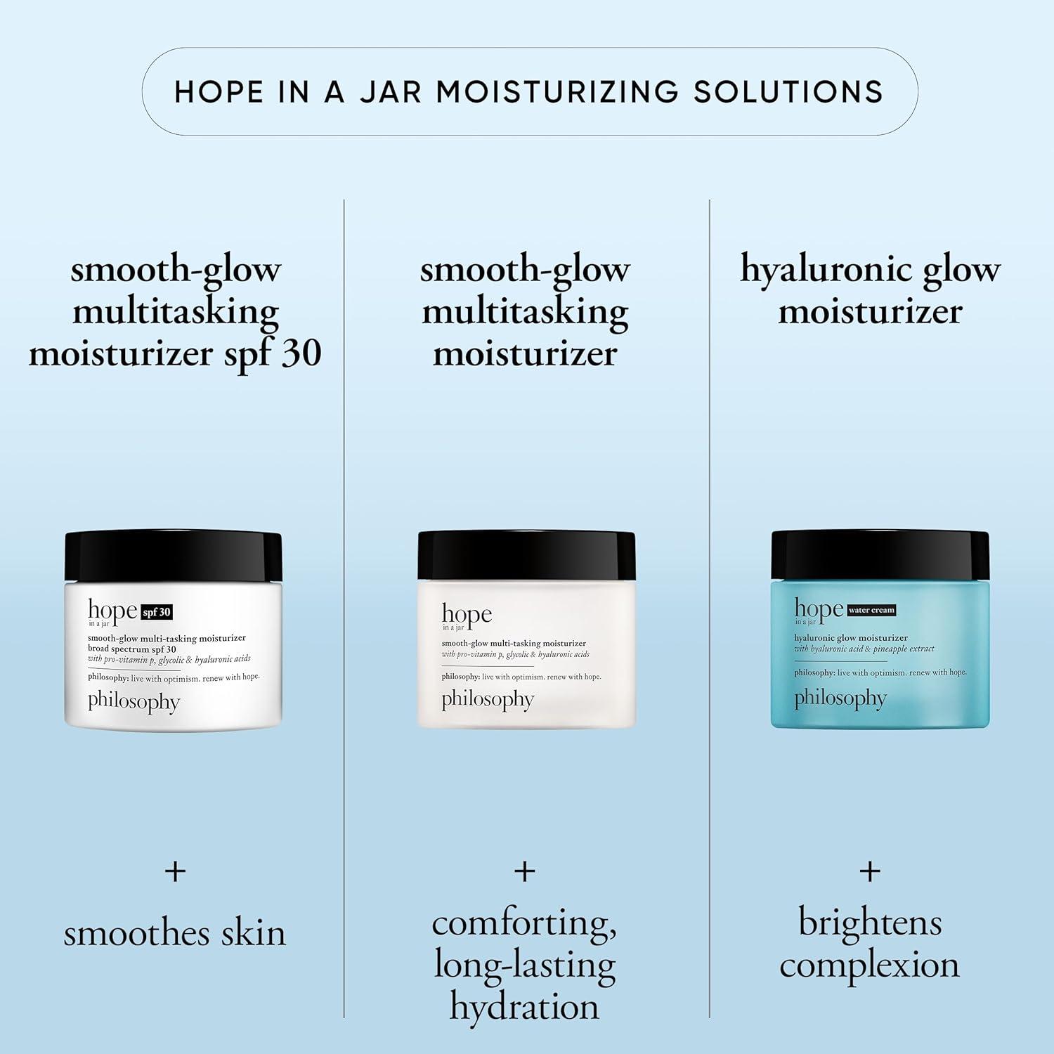 philosophy hope in a jar smooth-glow multi-tasking face moisturizer + spf 30 – with pro-vitamin P, glycolic acid & hyaluronic acid – provides deep & long-lasting hydration – 2 fl oz