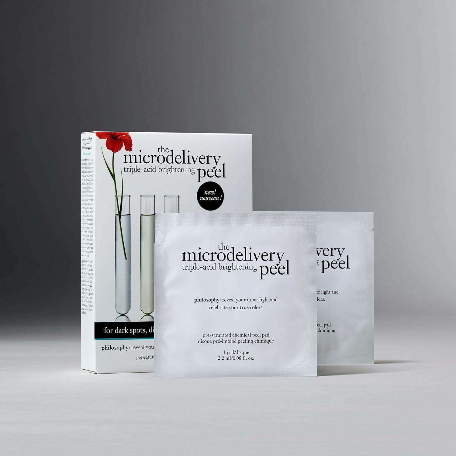 philosophy microdelivery triple-acid brightening peel pads with mandelic, glycolic & malic acid for discoloration, dark spots & uneven skin tone – 12 ct