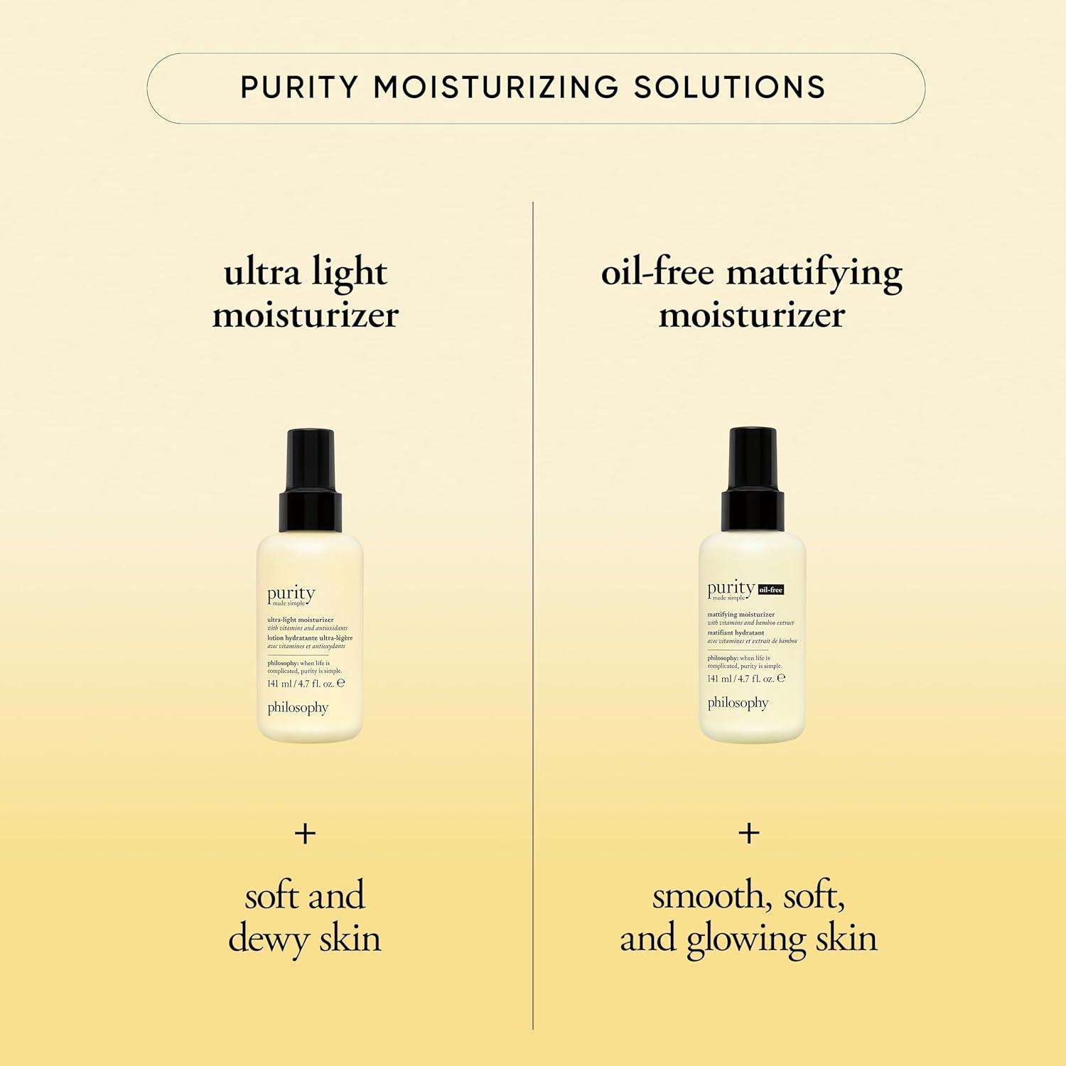 philosophy purity made simple pore ultra-light face moisturizer – with vitamins C & E, green tea, meadowfoam & chia seed oil – nourishing formula delivers 24-hour hydration – 4.7 fl oz(Aloe Vera(Oil-Free) – 4.7 fl oz)