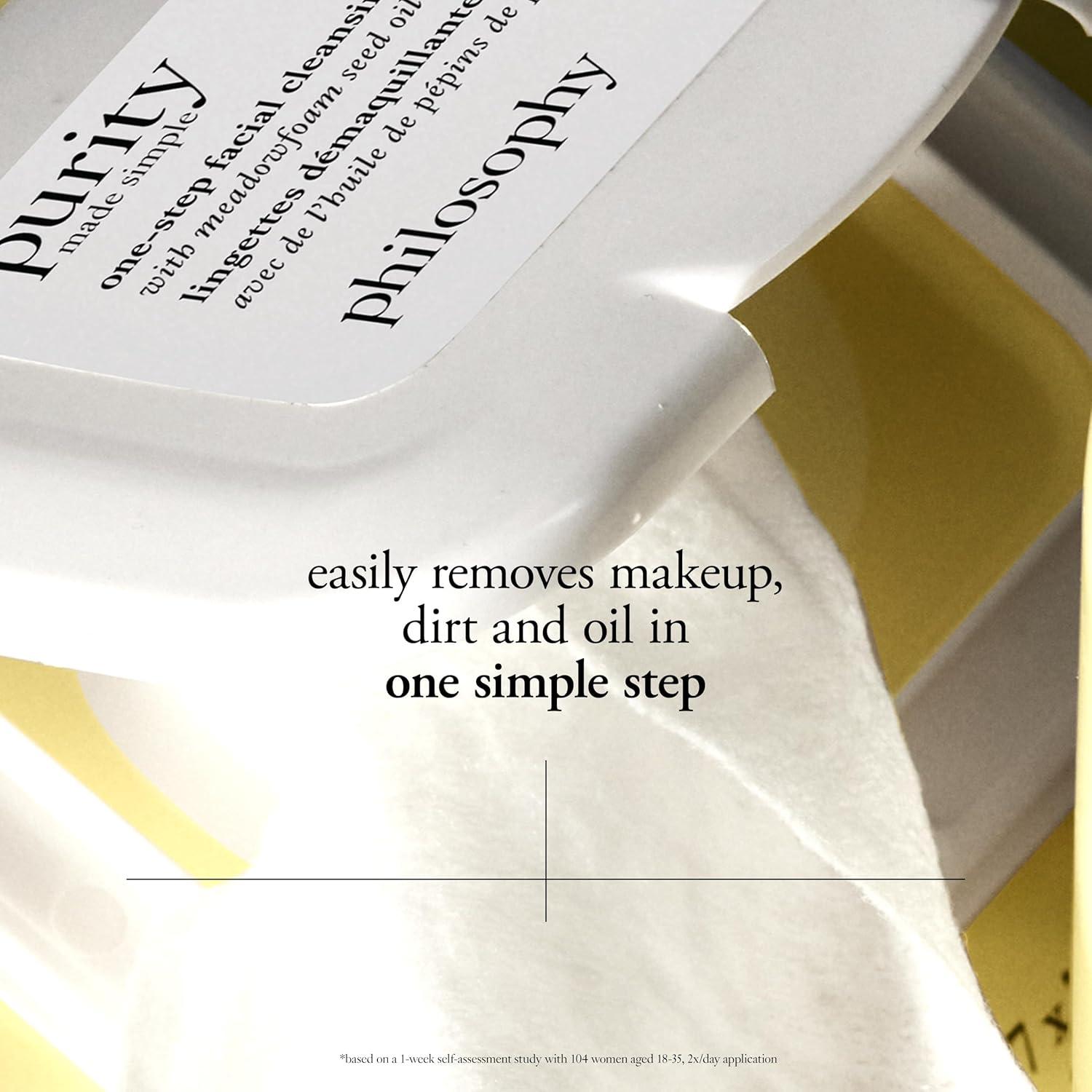 philosophy purity made simple one-step facial cleansing cloths – easily removes makeup, dirt & oil on the go – skin is left clean and comfortable with no rinsing needed(100 Count (Pack of 1))
