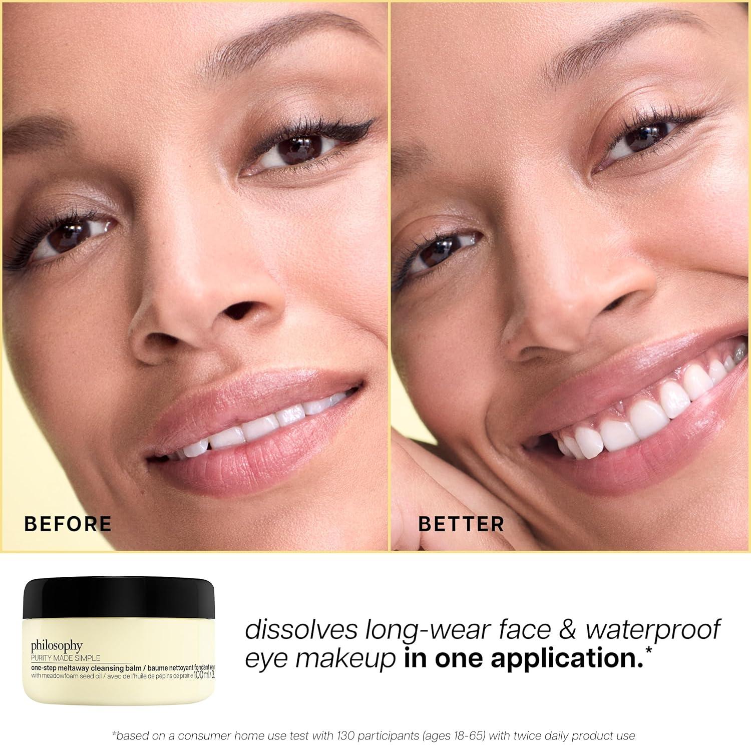 philosophy purity one-step meltaway cleansing balm – with hydrating glycerin – removes stubborn makeup & impurities – with nourishing meadowfoam seed oil